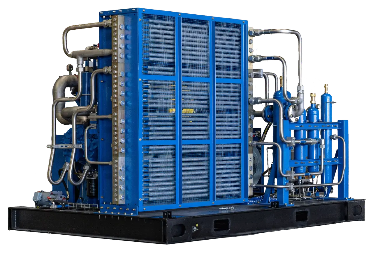 Новая установка обеспечивает производительность 5,0 м³/мин при рабочем давлении до 100 бар (10 МПа) и уже готова к эксплуатации без необходимости в специальном фундаменте.
