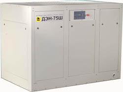 Винтовые компрессорные установки ДЭН-75Ш производятся на основе винтового компрессора немецкой фирмы ROTORCOMP со сроком наработки 40 000 часов без замены подшипника и 80 000 часов до капитального ремонта и предназначены для снабжения сжатым воздухом пневмосистем предприятий, пневмоинструмента, пневмоприводов при температуре окружающей среды от +1°С до +35°С.