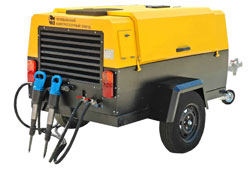 Компрессорная установка КВ-3/8П (передвижной дизельный компрессор) обеспечивает одновременную работу 2 отбойных молотков; бетонолома; перфоратора, позволяет производить продувку или оперсовку технологических сетей и резервуаров под давлением до 8 атмосфер.